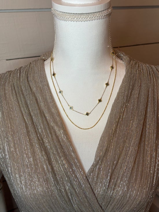 This 10K Gold Layered Necklace Set offers an effortlessly elegant, ready-to-wear stacked look. The set includes a delicate 10K gold clover station necklace, adjustable up to 18" for the perfect fit, paired with a classic 10K gold rope chain that adds subtle shine and dimension. Each piece is crafted from genuine 10K gold, creating a coordinated layered style that is timeless, feminine, and versatile enough for everyday wear or special occasions. Beautiful worn together or separately, this set delivers a polished luxury look with ease.