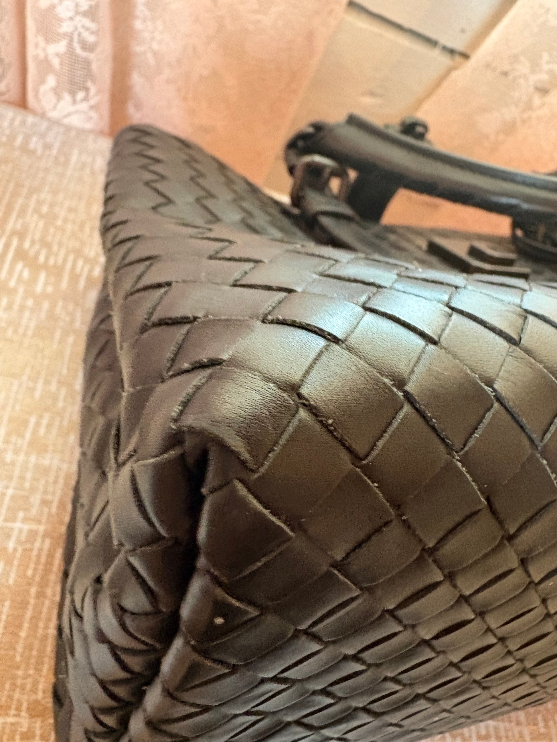 Preowned Bottega Veneta Roma medium tote in black leather. Good condition with light signs of wear. Timeless, structured design with a spacious interior for everyday elegance.