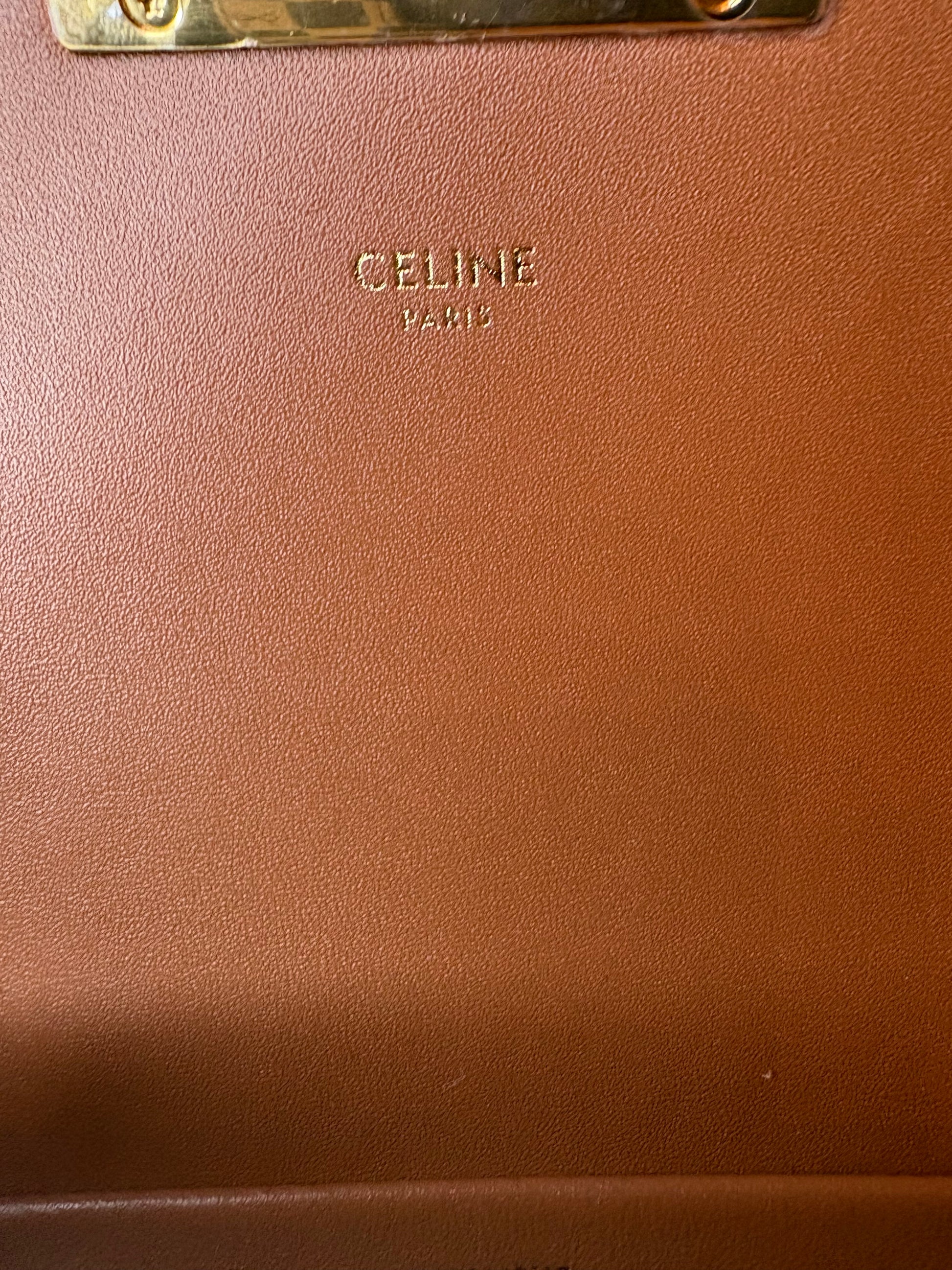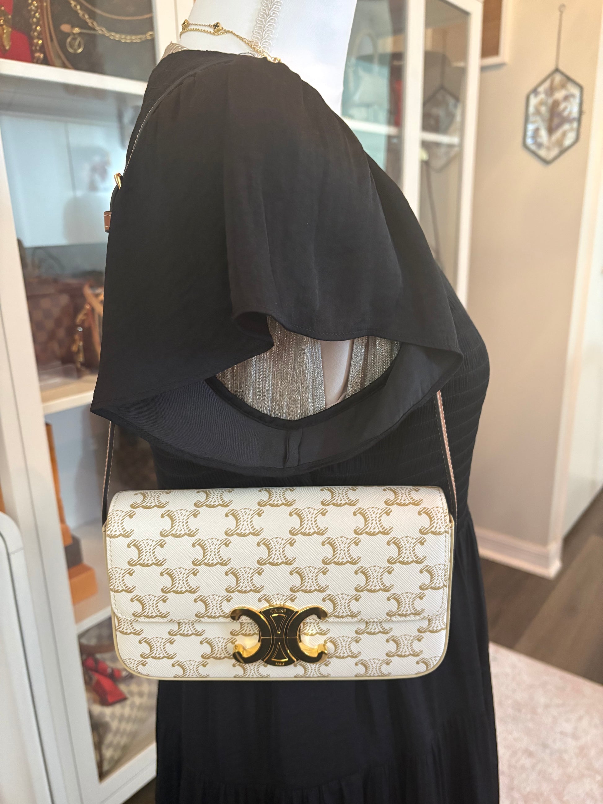 Celine Canvas & Calfskin Triomphe Shoulder Bag – White