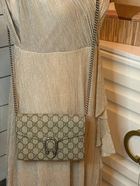 Preowned Gucci Dionysus Wallet on Chain in excellent condition. Iconic tiger head closure with versatile chain strap and organized interior.