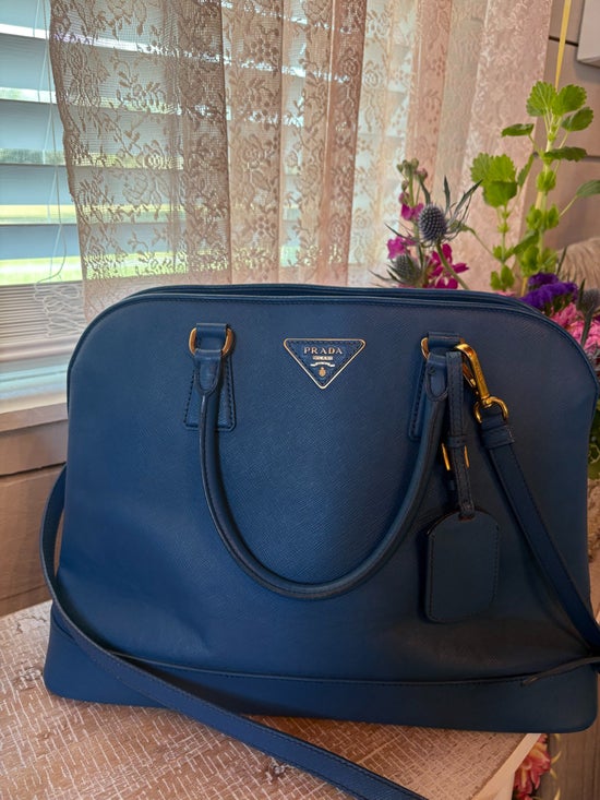 Preowned Prada Open Promenade Bag in large saffiano leather. Good condition with light signs of wear. Structured, timeless design with spacious interior for everyday use.